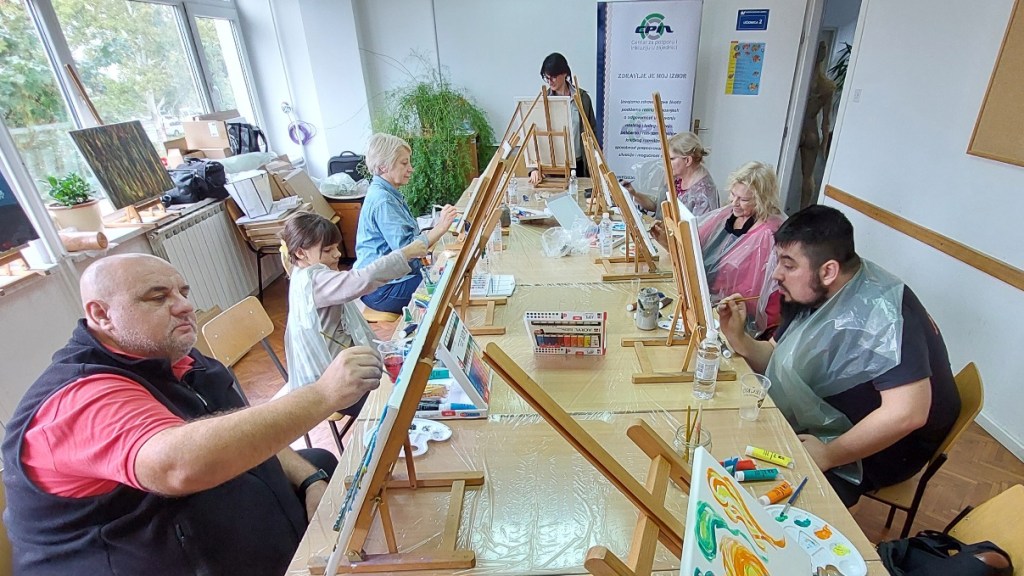 Centar za otporu i inkluziju u zajednici danas je u okviru projekta “Zdravlje je moj izbor” u sklopu Javnog natječaja za financiranje programa i projekata udruga iz područja zaštite zdravlja iz Proračuna Grada Zagreba za 2024., održao Inkluzivnu likovnu koloniju za djecu, mlade, branitelje i osobe s invaliditetom u Narodnom sveučilištu Sesvete (28.9.2024.).
