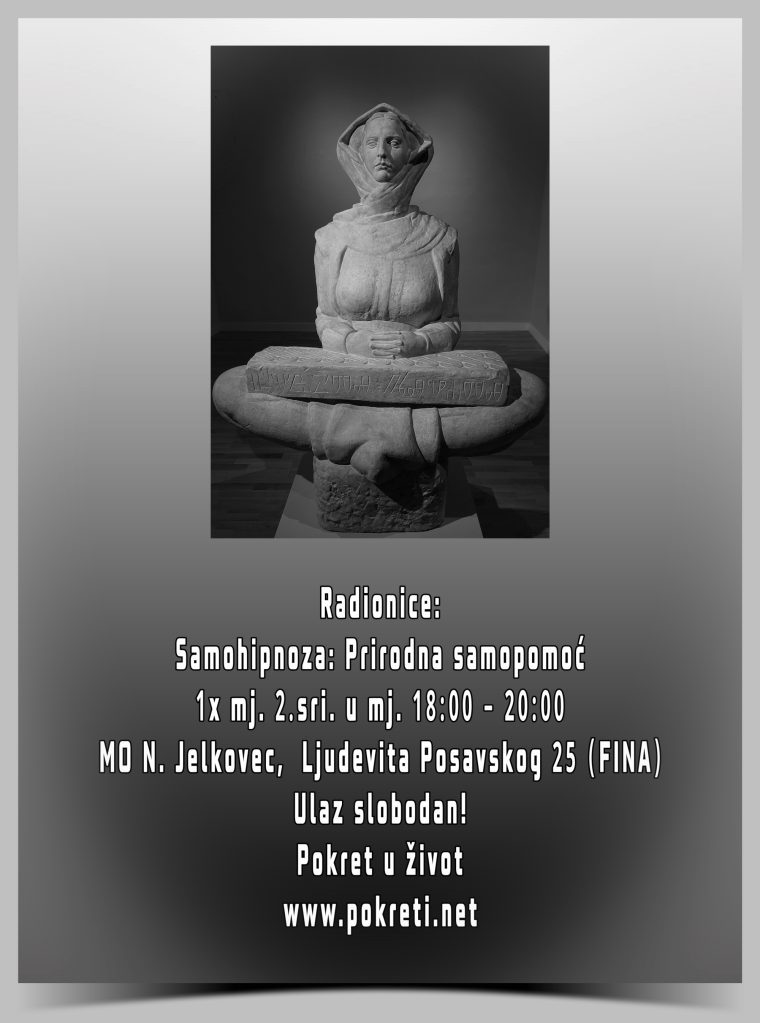 PUŽ započinje zanimljivu radionicu: Samohipnoza: Prirodna samopomoć koja će se provoditi jednom mjesečno, druga srijeda u mjesecu u MO N. Jelkovec, Ljudevita Posavskog 25, 18:00 – 20:00. Ulaz je slobodan za sve koji žele sudjelovati. Prva radionica će biti 11.6.2025., a plan je održati 5 radionica. Koncept radionice: predavanje (40′), prakticiranje (30′) uz vježbe opuštanja i disanja, te vježbanje samohipnoze, na kraju druženje i razgovor (50′).